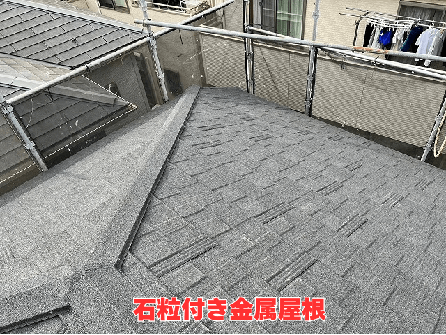 今回は 石粒付き金属屋根への屋根工事 について簡単に紹介していきます!