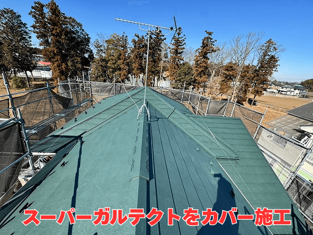 これは、今の屋根を剥がさずに、その上から新しい軽い屋根材を重ねて被せる工法のことです。