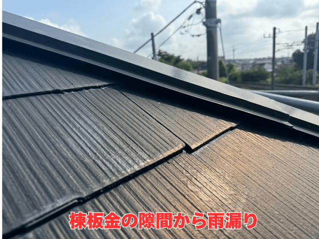 職人が現地に伺い、まず屋根に上がって丁寧に調査を行ったところ、雨水が侵入していたのは「棟板金」の隙間でした。