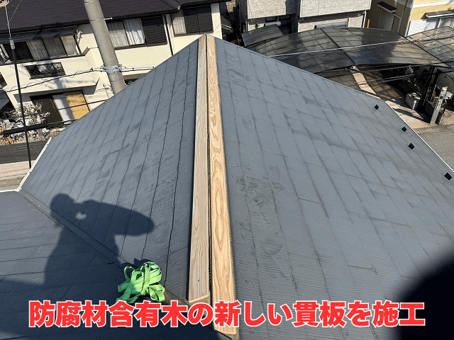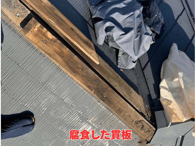 調査の結果、劣化した貫板は木材内部まで腐っており、そのままでは雨水がどんどん侵入してしまう状況でした。