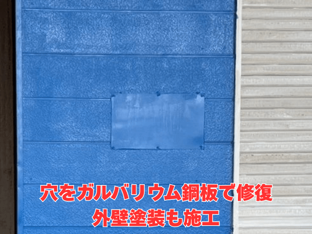 今回は倉庫の壁の穴を板金で修理し、美観を保つ外壁塗装リフォーム工事について簡単に紹介していきます!