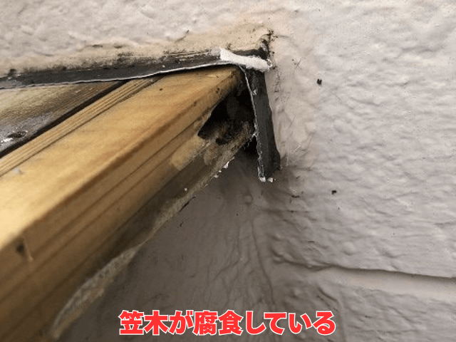 目視で笠木部分を詳しく確認すると、 紫外線や風雨による劣化が進み、継ぎ目や固定部のシーリング(隙間をふさぐ防水材)がひび割れている場所 がありました。